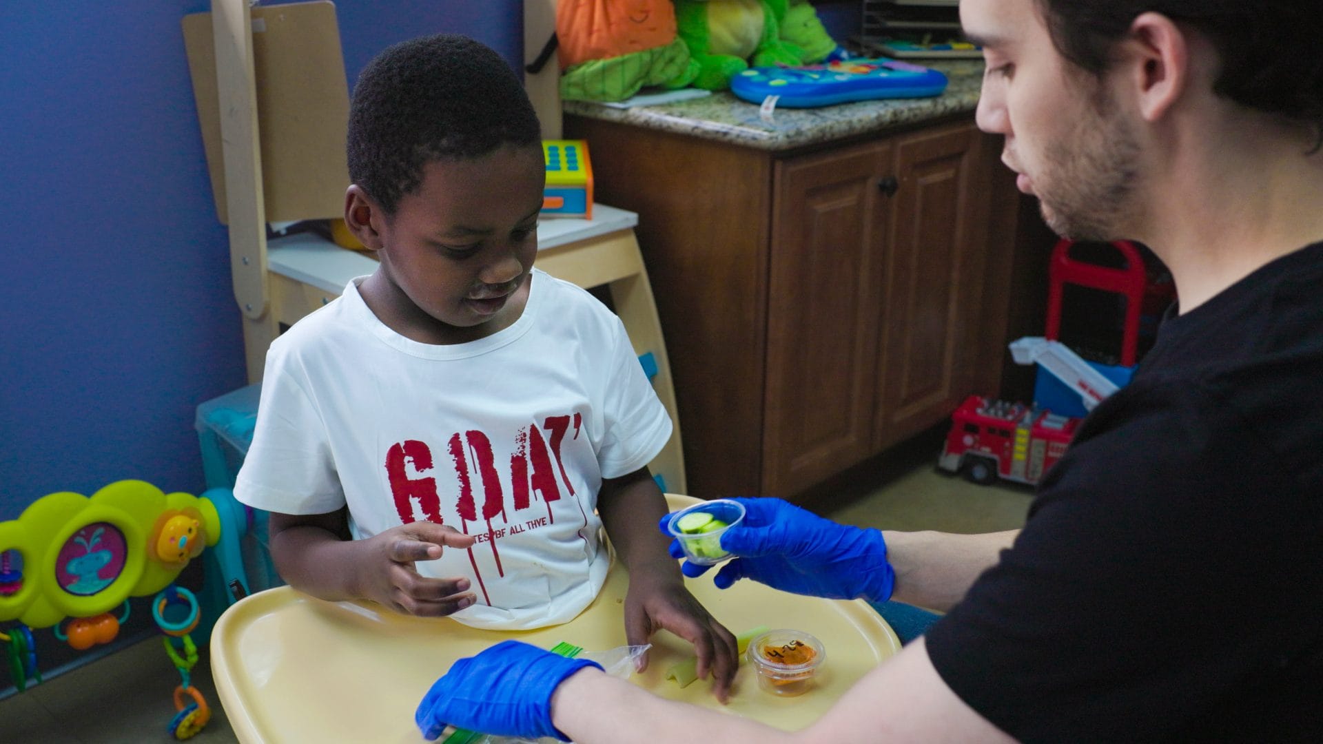 Feeding is a complex skill that goes far beyond simply eating; it requires coordination of the mouth, tongue, jaw, and sensory system. At Special Kids, our trained speech-language and occupational therapists work with children who experience a variety of feeding challenges, including oral-motor coordination difficulties and sensory-based food aversions.